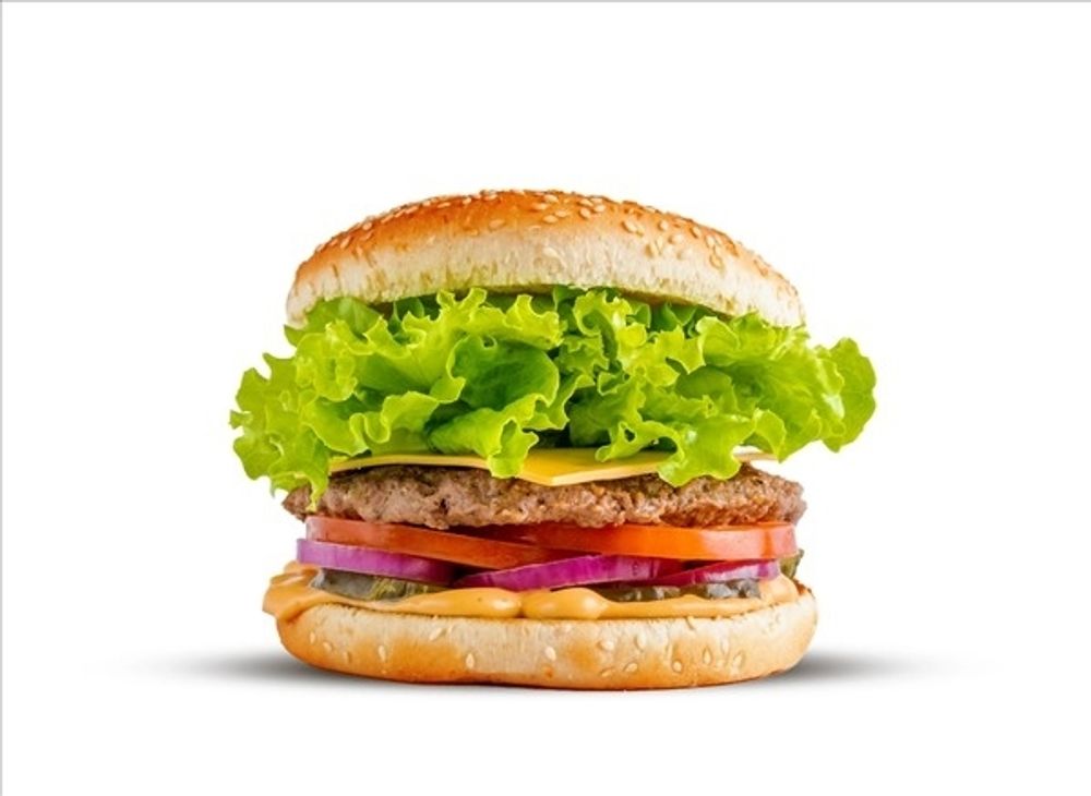 150 g hovězího masa, tavený sýr Cheddar, bulka dle výběru, nakládaná okurka, cibule, rajče, salát, Master omáčka